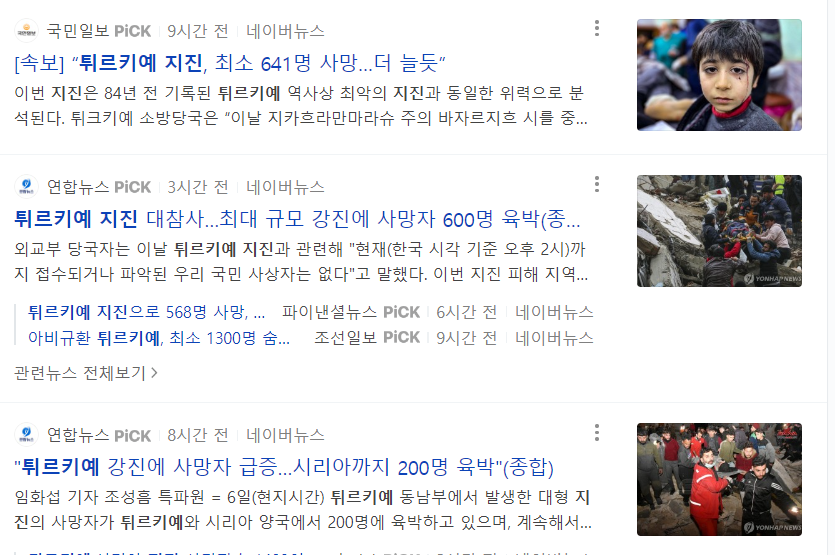 튀르키예 지진 규모 7.5 사망자 1,500명 원인 현재상황 영상 바로가기